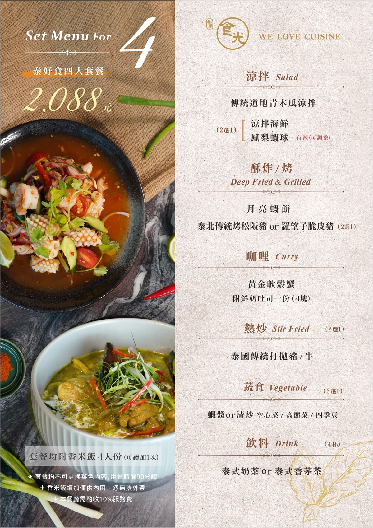◇ 本餐廳九成餐點皆有辣(正常辣=泰式辣) 若需調整請於點餐時告知為您點餐的服務人員;部分餐點辣度固定不可調整。