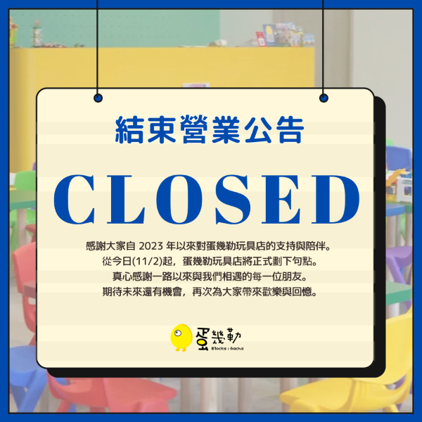 《結束營業公告》蛋幾勒親子玩具概念館