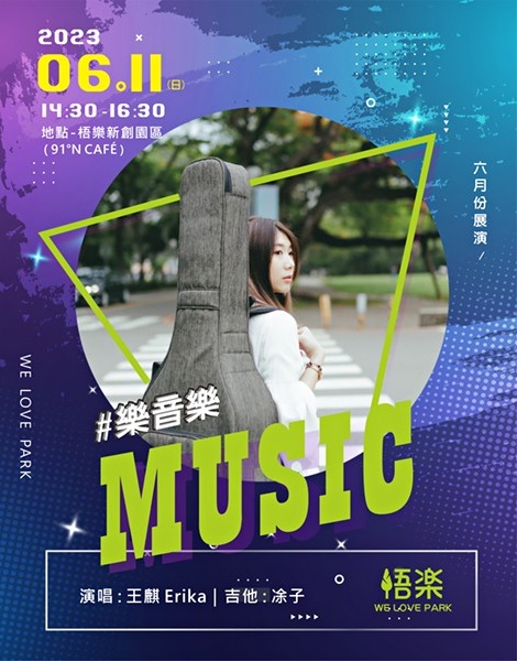 2023-06-11 【樂Music 】 六月份展演活動 - 王麒Erika 樂Music六月份活動 邀請到 歌聲甜美系 #王麒 Erika 現場音樂演唱! 悠閒的週末時光與您分享好音樂、好咖啡。 日期:2023-6-11 (日) 地點:梧樂新創園區 ( 91°N CAFÉ ) 時間:PM 2:30 - 4:30