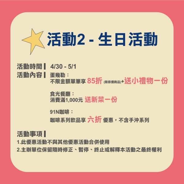 ・*:.。. ♡活動1:生日券♡.。.:*・゜